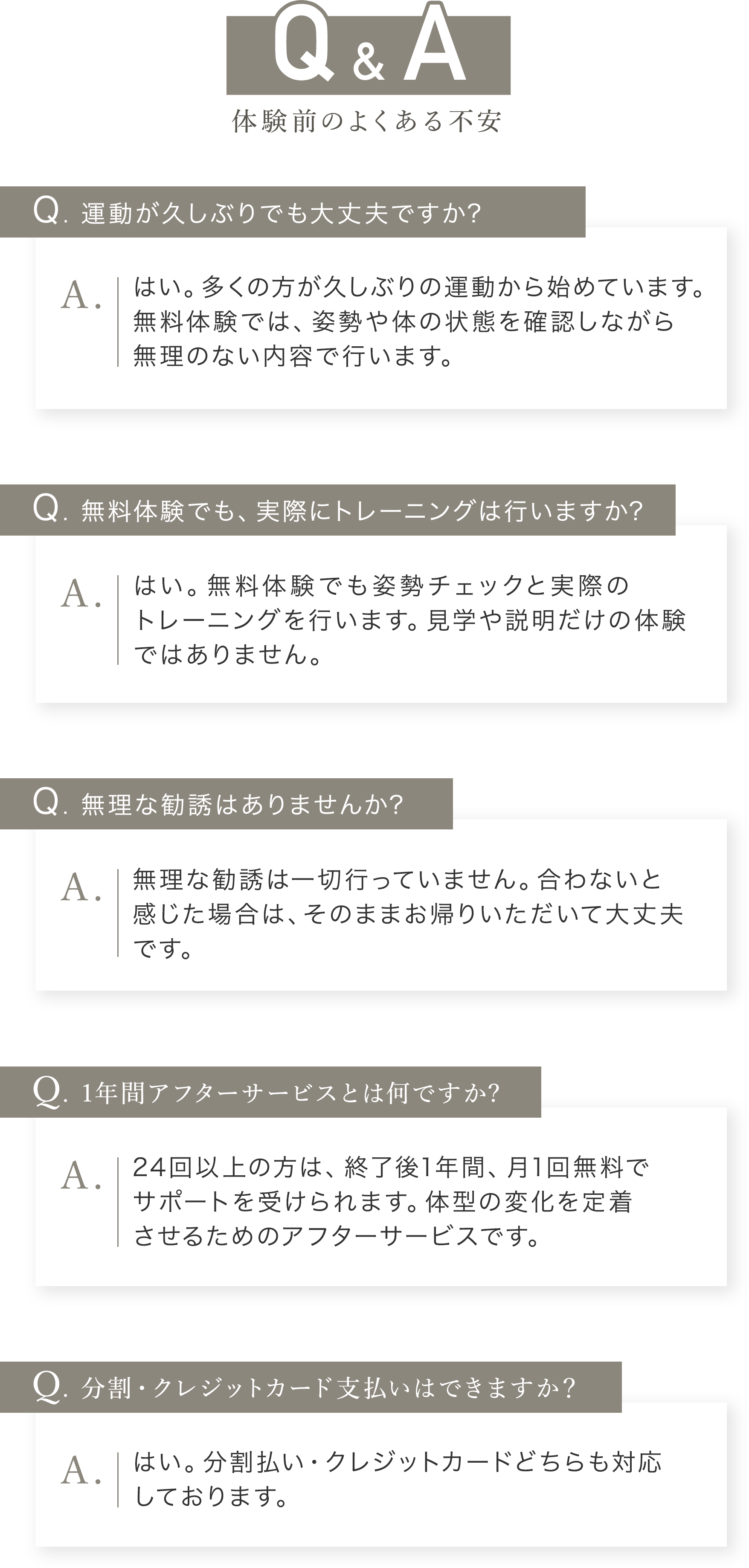女性専用パーソナルジムに関するよくあるご質問